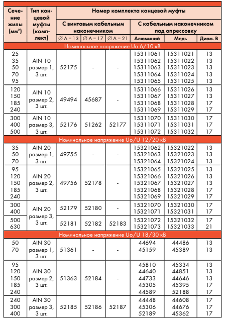 Муфты AIN 10, AIN 20 и AIN 30 предназначены для подключения кабелей на среднее напряжение с пластмассовой изоляцией и экструдированным, графитовым или легко удаляемым полупроводящим слоем, или EPR кабелей. Для каждого диапазона напряжений поставляются концевые муфты из высококачественного силикона трех типоразмеров, с помощью которых можно подключить кабели любого сечения. Другой отличительной особенностью является простой и быстрый монтаж. Кабель подключается с помощью винтового кабельного наконечника или кабельного наконечника под опрессовку. Для подключения трехжильных кабелей используются концевые муфты с дополнительными принадлежностями.