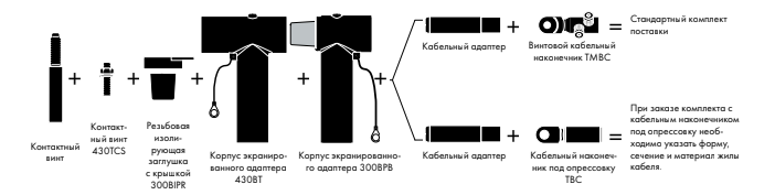 Комплект экранированного адаптера (К)(М)430ТВМ-Р2 включает в себя три набора следующих компонентов: