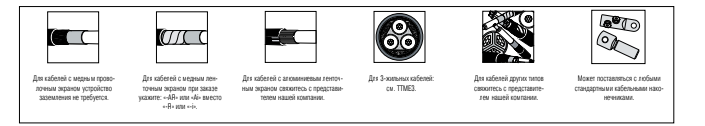 | Номер комплекта | Напряжение Um (кВ) | Кабельный наконечник, поставляемый в комплекте | Сечение жилы (мм2) | |||