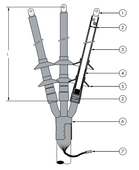 До 12 кВ Uo/U (Um) 6/10(12) кВ 6,35/11(12) кВТермоусаживаемая концевая муфта наружной установки для одножильных кабелей